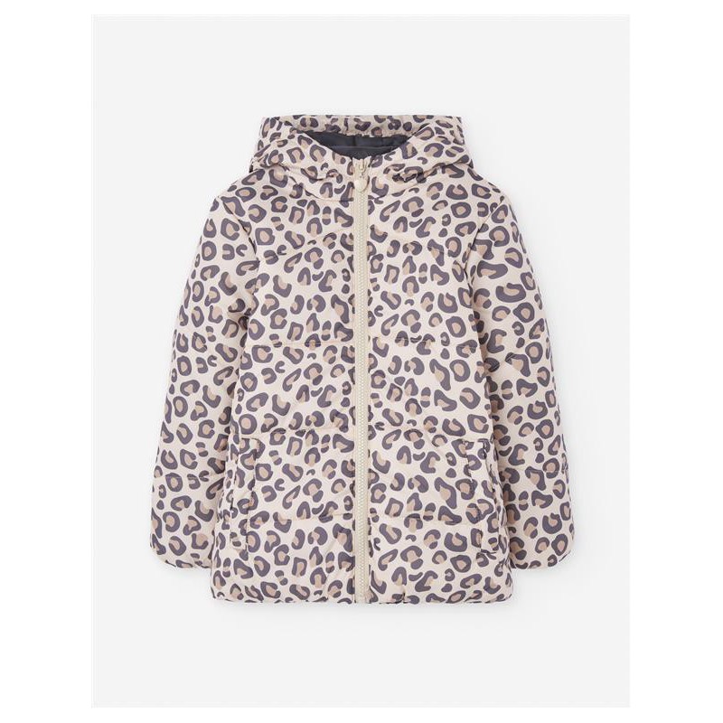 Chaqueta acolchada de niña con estampado animal print en tonos neutros. Diseñada con capucha y cierre de cremallera frontal, es ligera, cómoda y abrigada, ideal para los días fríos. Una prenda moderna y versátil que combina estilo y funcionalidad para completar cualquier look infantil.