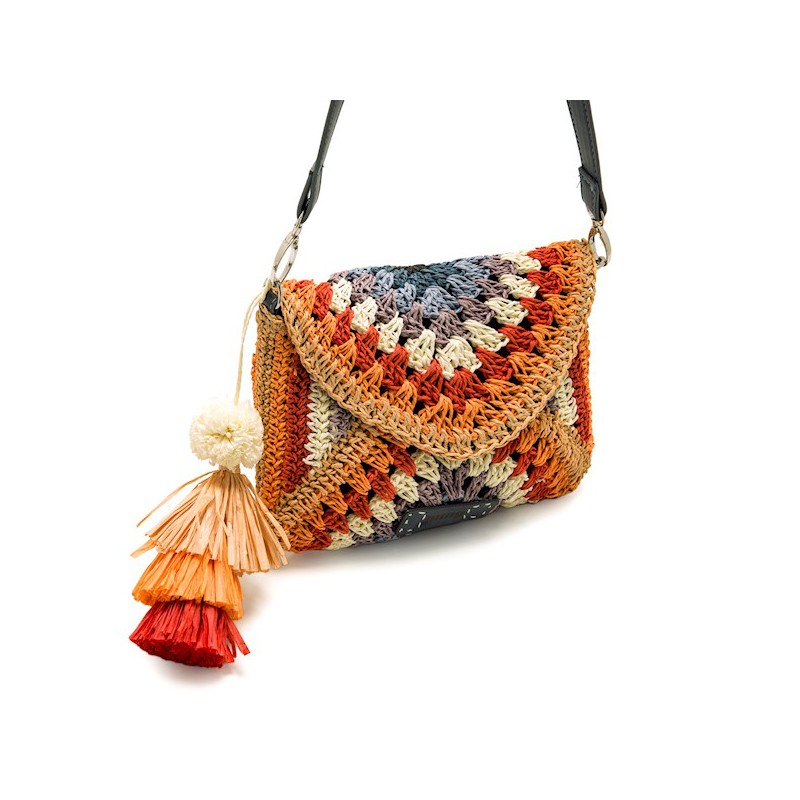 Bolso Crochet Multicolor con Flecos y Asa de Hombro