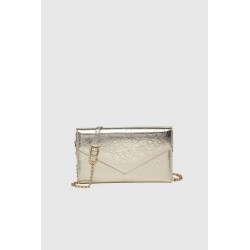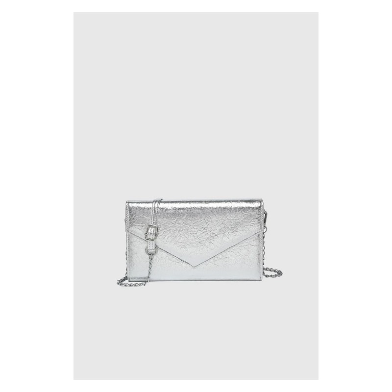 Eleva tu estilo con este sofisticado bolso de mano tipo sobre en un elegante color blanco. Su delicada textura grabada le añade un toque de distinción y sutileza. Cuenta con una solapa frontal con cierre magnético para mayor seguridad. Incorpora una fina cadena dorada desmontable que te permite llevarlo cómodamente al hombro o cruzado, adaptándose a tus necesidades y ocasiones. Su tamaño compacto es ideal para llevar tus esenciales con estilo en eventos, fiestas o para complementar tus looks más elegantes.
