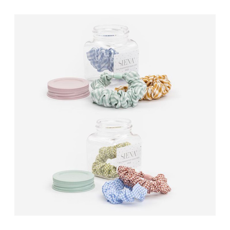 Este set de accesorios es el detalle perfecto para mantener el cabello recogido con estilo y suavidad, evitando tirones gracias a su confección en tela El producto se presenta en un bonito bote con tapa de color, ideal para mantener el orden en el tocador o para regalar Cada bote contiene una selección de coleteros de tela con el icónico estampado de cuadros vichy, disponibles en una variada gama de colores que incluye azul celeste, verde agua, mostaza, rosa palo y teja Su diseño elástico y mullido permite realizar coletas, trenzas o moños de forma cómoda, aportando un aire dulce y campestre a los looks diarios de las más pequeñas Es el complemento ideal para coordinar con la Bermuda Vichy Verde Agua o el Peto de Rayas, logrando una armonía total en el estilismo veraniego.