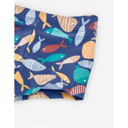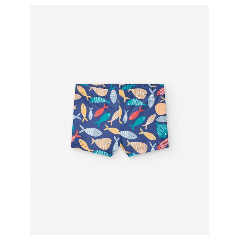 Divertido bóxer de baño para bebé niño en tono azul marino con un alegre estampado de peces de colores. Tejido de secado rápido y cintura elástica. Ideal para sus primeros chapuzones con comodidad y estilo.