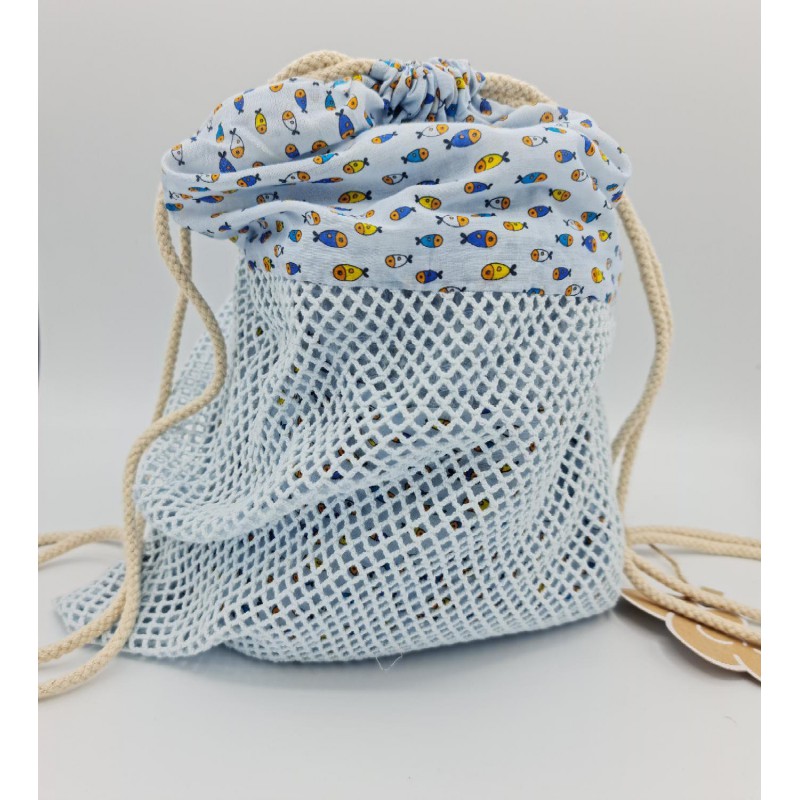 Bolsa de Malla con Cordón Estampado Peces para Colección de Baño