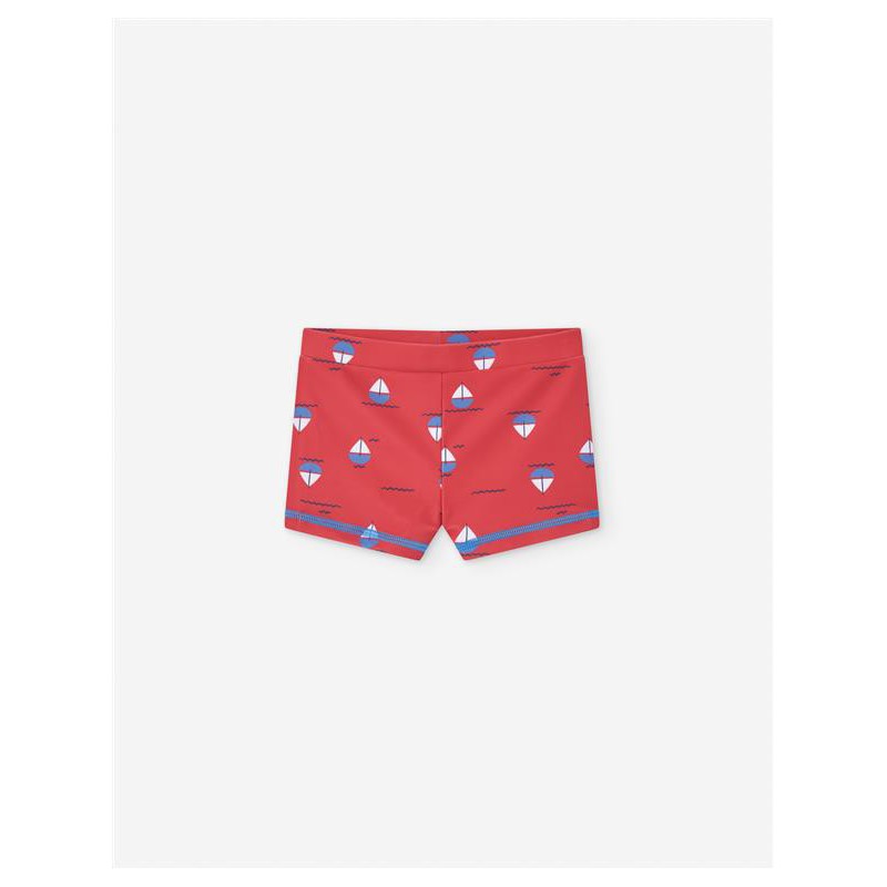 Boxer bebe baño rojo de barcos azules para que los más pequeños de la casa pasen un verano maravillo en la playa o en la piscina.