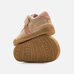 Zapatillas rosas FREE BABY para bebés. Estas zapatillas combinan detalles turquesas. Con cierre adherente y de cordones. Diseñada y desarrollada especialmente para respetar el desarrollo natural del pie de la niña. Gracias a su puntera ancha permite el libre movimiento de los dedos dentro del zapato. Su suela tiene 3 mm de grosor y con zero drop (totalmente plana) respeta el natural desarrollo del pie del pequeño y sus elementos flexibles y torsionables hace que el pie del niño no esté encorsetado por la estructura del zapato. Las plantillas extraíbles y las marcas de los dedos en la misma, facilita comprobar si la talla del calzado es la correcta para tu hijo. Además, su fácil apertura facilita que el niño pueda descalzarse y calzarse de forma autónoma. By Mustang Kids.