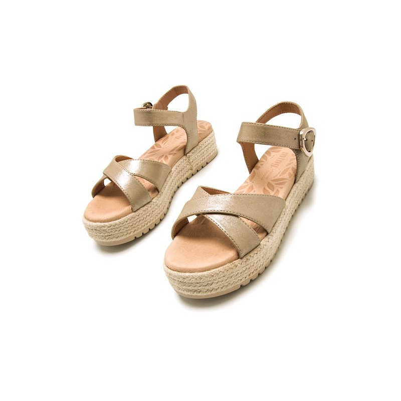 SANDALIA PLATAFORMA YUTE TIRAS DORADAS