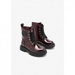 Las Burgundy Military Patent Boots son unas botitas con mucha personalidad y un toque brillante que no pasa desapercibido. Su acabado charolado en color burgundy les da un aire moderno y fácil de combinar, perfectas para los primeros pasos con estilo.