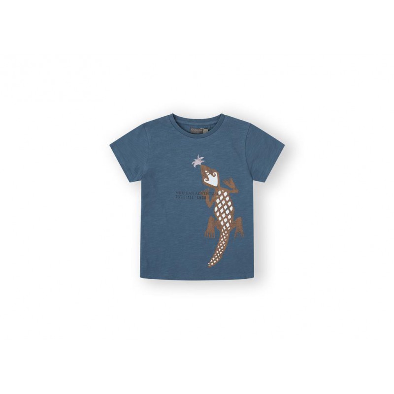 Camiseta de niño en color azul con original estampado de lagarto tribal estilo mexicano, ideal para añadir un toque divertido y aventurero al look de los más pequeños. Confeccionada en algodón suave de alta calidad, ofrece comodidad y frescura durante todo el día. Su diseño de manga corta la convierte en una prenda esencial para el verano o para combinar con una sobrecamisa en días más frescos. Perfecta para los pequeños exploradores que aman los estampados únicos y llenos de personalidad.