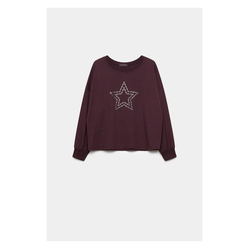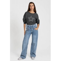 Esta moderna camiseta de manga larga es la opción perfecta para quienes buscan un estilo juvenil y con mucha personalidad Su diseño resalta gracias a una gran estrella central adornada con aplicaciones brillantes que capturan todas las miradas Cuenta con detalles de tendencia como hombros descubiertos o acabados elásticos en los puños que fusionan moda y comodidad en una sola pieza Confeccionada en un tejido suave al tacto es una prenda versátil ideal para combinar con cualquier conjunto diario.