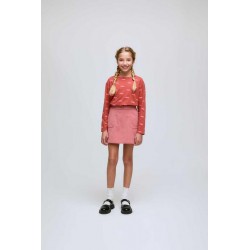 Moderna camiseta de manga larga para niña confeccionada en un suave tejido de algodón elástico que garantiza comodidad durante todo el día, el diseño presenta un vibrante color teja de fondo sobre el que destaca un divertido estampado integral de labios en tonos rosa flúor y rojo, cuenta con un corte holgado tipo sudadera ligera con hombros ligeramente caídos para un estilo relajado y actual, es una prenda ideal para combinar con faldas de pana o pantalones vaqueros creando un conjunto lleno de color y tendencia para la temporada de otoño e invierno.