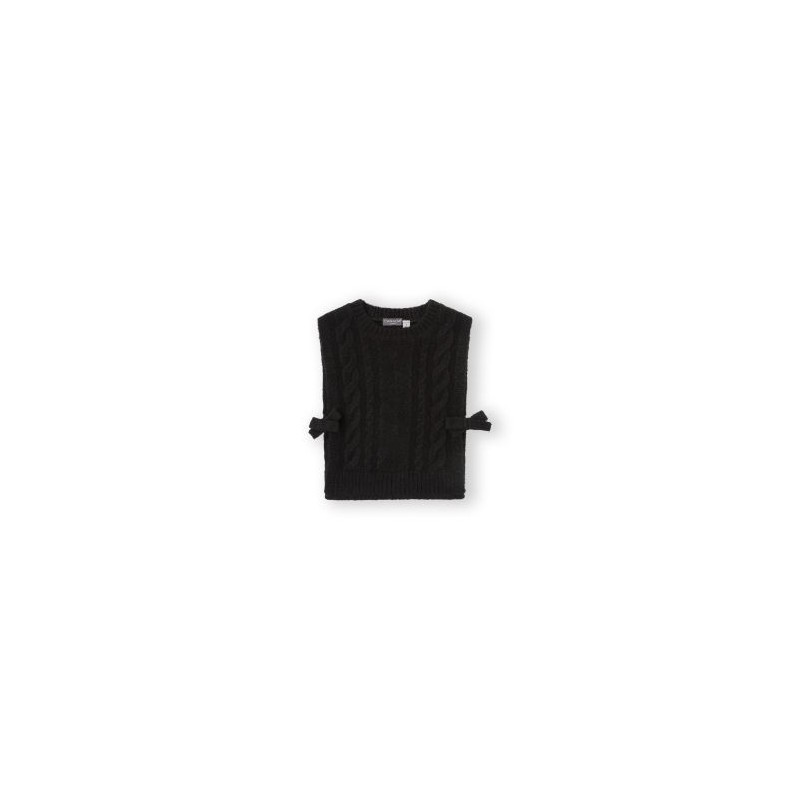 Chaleco de punto para niña, confeccionado en tejido suave y calentito con delicado dibujo de trenzas que aporta textura y estilo. Su diseño sin mangas se completa con lazos decorativos en los laterales, un detalle encantador que le da un aire dulce y especial.