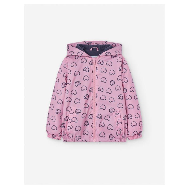 Esta encantadora chaqueta ligera es la prenda ideal para proteger a los más pequeños durante los días de entretiempo con un estilo alegre y romántico Su diseño destaca por un divertido estampado de corazones repartido por toda la prenda, aportando un toque dulce y moderno Cuenta con una práctica capucha forrada, cierre frontal de cremallera y acabados elásticos en puños y bajo para asegurar un ajuste cómodo que bloquea el viento Fabricada con un material técnico resistente y fácil de lavar, incluye bolsillos laterales funcionales, convirtiéndola en una opción versátil y necesaria para cualquier aventura al aire libre.