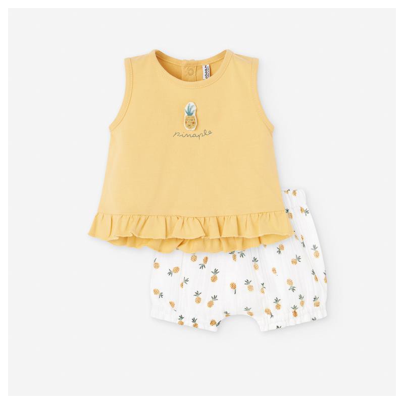 Conjunto de Top Amarillo con Volantes y Shorts Estampados de Piñas para Bebé Niña