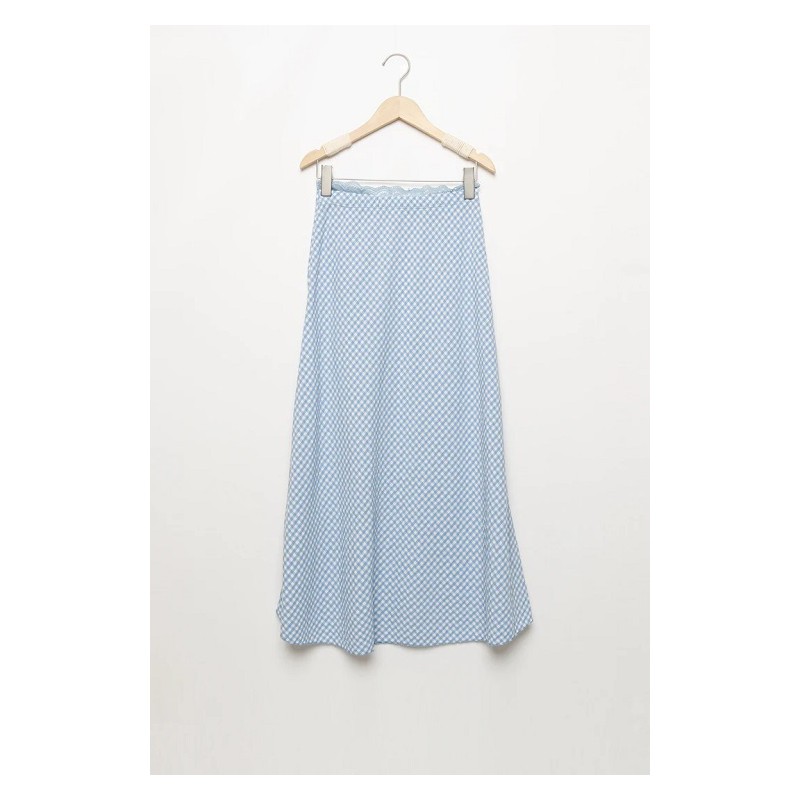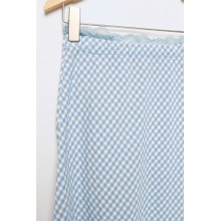 Falda midi de cuadros vichy en tono celeste, perfecta para primavera y verano. Con cintura elástica para un ajuste cómodo y favorecedor, esta falda aporta un estilo femenino y fresco ideal para looks casuales o románticos. Su corte evasé realza la silueta sin sacrificar libertad de movimiento. Combínala con blusas, camisetas básicas o sudaderas para un outfit versátil y lleno de encanto.