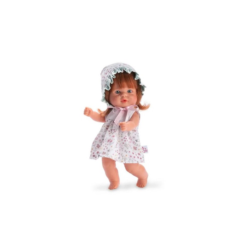 Descubre nuestra adorable muñeca de 20 cm, vestida con su precioso conjunto floral y su capota retro. Un juguete clásico y de calidad que promueve la creatividad y el cuidado.