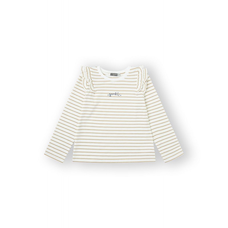 CAMISETA NIÑA VOLANTITOS RAYA DORADA