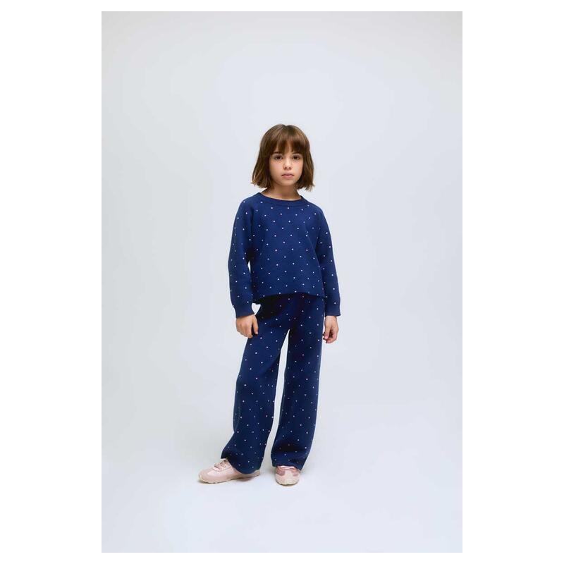 PANTALON NIÑA PUNTO AZUL LUNARES ROSAS