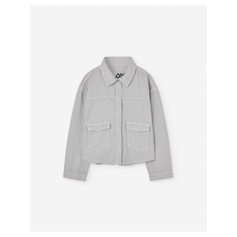 Cazadora de chica juvenil denim color piedra, con bolsillos con solapa, By Losan.
