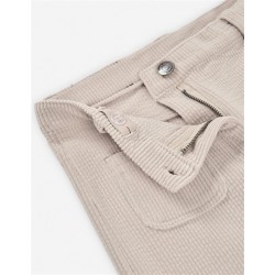 Pantalón de niña confeccionado en pana fina, suave y muy cómoda, ideal para los días de otoño e invierno. Presenta un corte recto y ligeramente ancho, con bolsillos delanteros y cintura con trabillas para un ajuste perfecto. Su tono beige neutro lo convierte en una prenda versátil y fácil de combinar con cualquier look. Un básico moderno y cálido para el armario de tu pequeña.