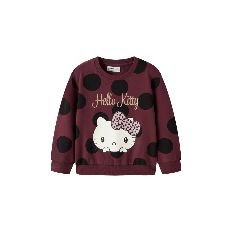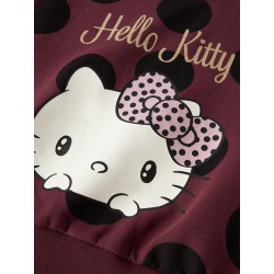 Detalles Brillantes: El centro está protagonizado por el rostro de Hello Kitty y un lazo con lunares. El logotipo "Hello Kitty" está impreso con un efecto de purpurina dorada (glitter), que añade un toque de brillo.