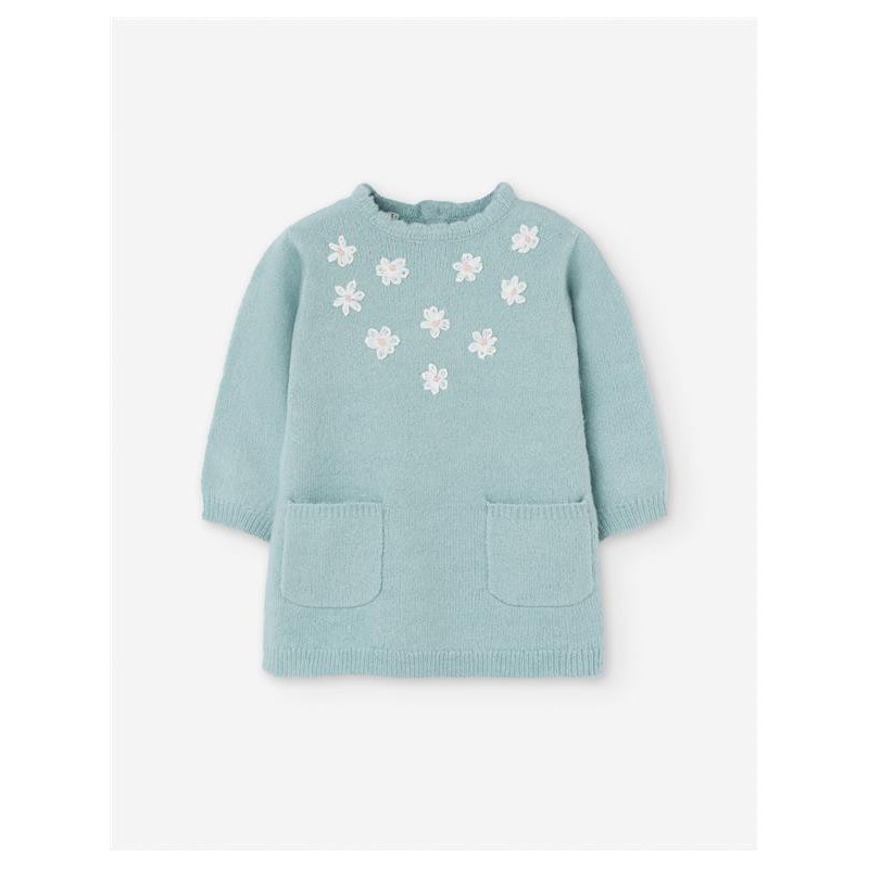 VESTIDO BEBE PUNTO FLORES VERDE AGUA